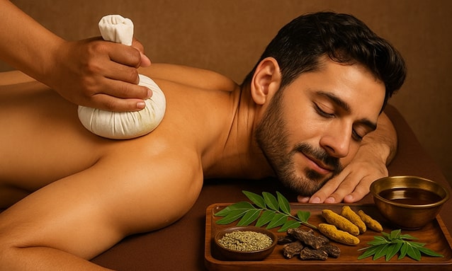 This 7 days of therapy comprises of 1. Abhyanga – First 2 days of Warm herbal oil massage, 2. Udvartana – Next 2 days of Herbal powder massage (good for stagnation & swelling), 3. Kizhi / Pinda Sweda – The last 3 days of Herbal poultice massage (for inflammation & sluggish circulation)